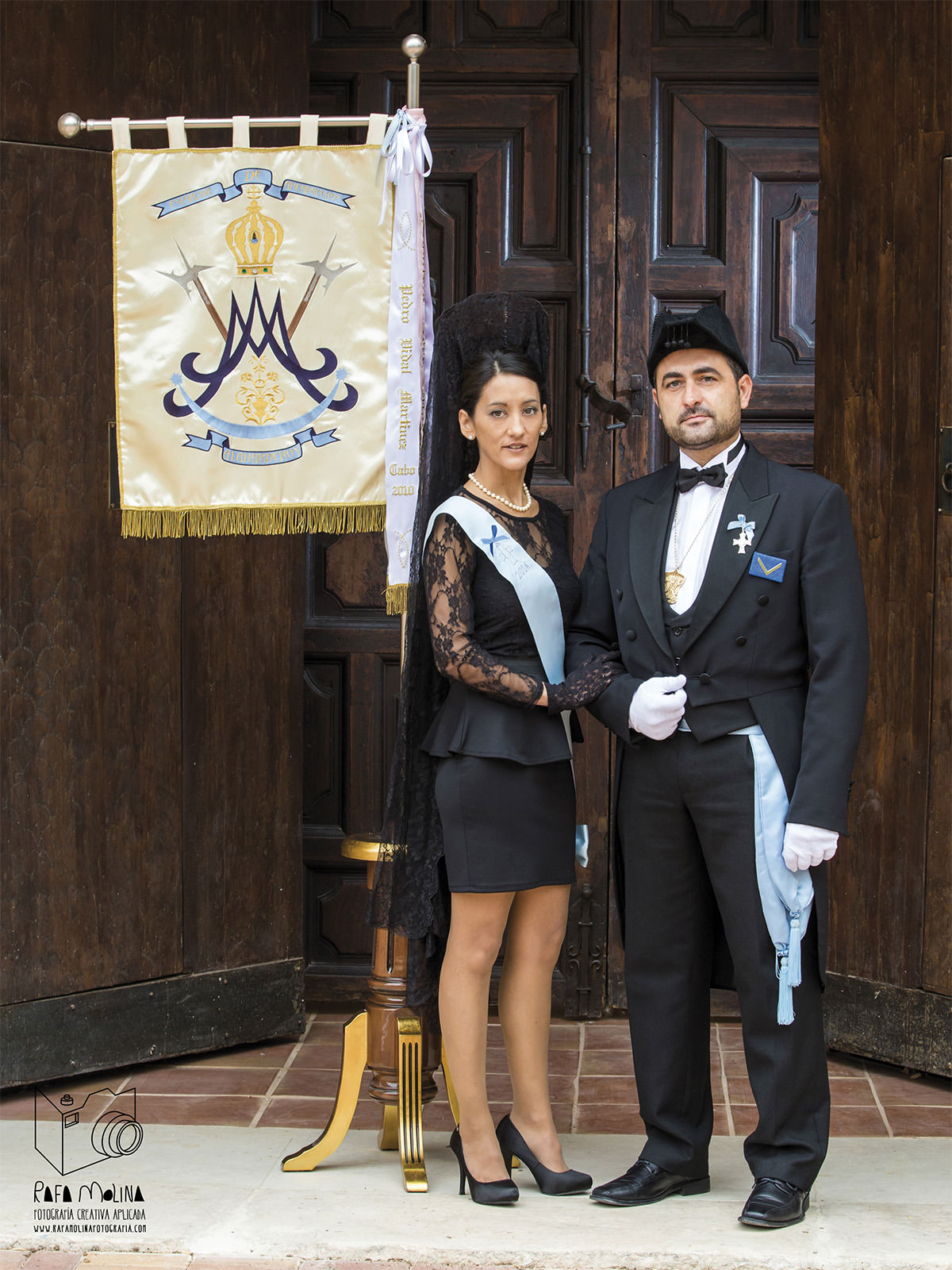 El arcabuz, uno de los símbolos de esta joven agrupación de escuadras, imita el imponente filo de la alabarda. Basado en el típico mosquete de los Tercios Españoles en Flandes del siglo XVI, su culata está tallada en madera de haya envejecida donde se alternan bordones y vaciado de planos de exquisita elegancia. Su decoración nos recuerda a ciertos motivos ornamentales bordados en el manto de nuestra Virgen. El diseño pertenece al artista yeclano Martín Manuel García Santa.